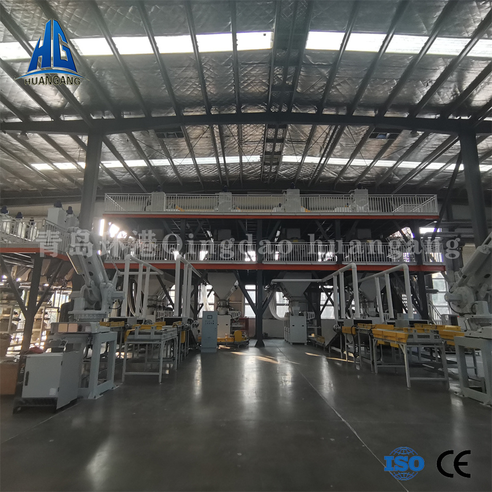 這是一套年產(chǎn)10-30萬(wàn)噸的全自動(dòng)環(huán)保膩?zhàn)臃鄢商自O(shè)備。通過(guò)調(diào)配原料的比例不同可生產(chǎn)內(nèi)墻膩?zhàn)?、外墻膩?zhàn)?、普通膩?zhàn)?、鏡面膩?zhàn)印⑹嗄佔(zhàn)拥榷喾N類(lèi)膩?zhàn)臃郛a(chǎn)品。每小時(shí)根據(jù)所選型號(hào)不同,可生產(chǎn)10~30噸產(chǎn)品,生產(chǎn)線(xiàn)主樓采用塔式結(jié)構(gòu),粉料倉(cāng)安裝在主樓頂部,外加劑系統(tǒng)采用獨(dú)立平臺(tái)計(jì)量泵送。骨料自上而下經(jīng)過(guò)計(jì)量層、混合機(jī)層、成品倉(cāng)、包裝機(jī)、碼垛線(xiàn)。根據(jù)膩?zhàn)臃鄣呐浞揭?,可通過(guò)電腦計(jì)量精確配料后,經(jīng)過(guò)混合主機(jī)攪拌,即時(shí)生產(chǎn)出需要的膩?zhàn)臃郛a(chǎn)品。全過(guò)程采用智能自動(dòng)化操作模式,減少人力投入