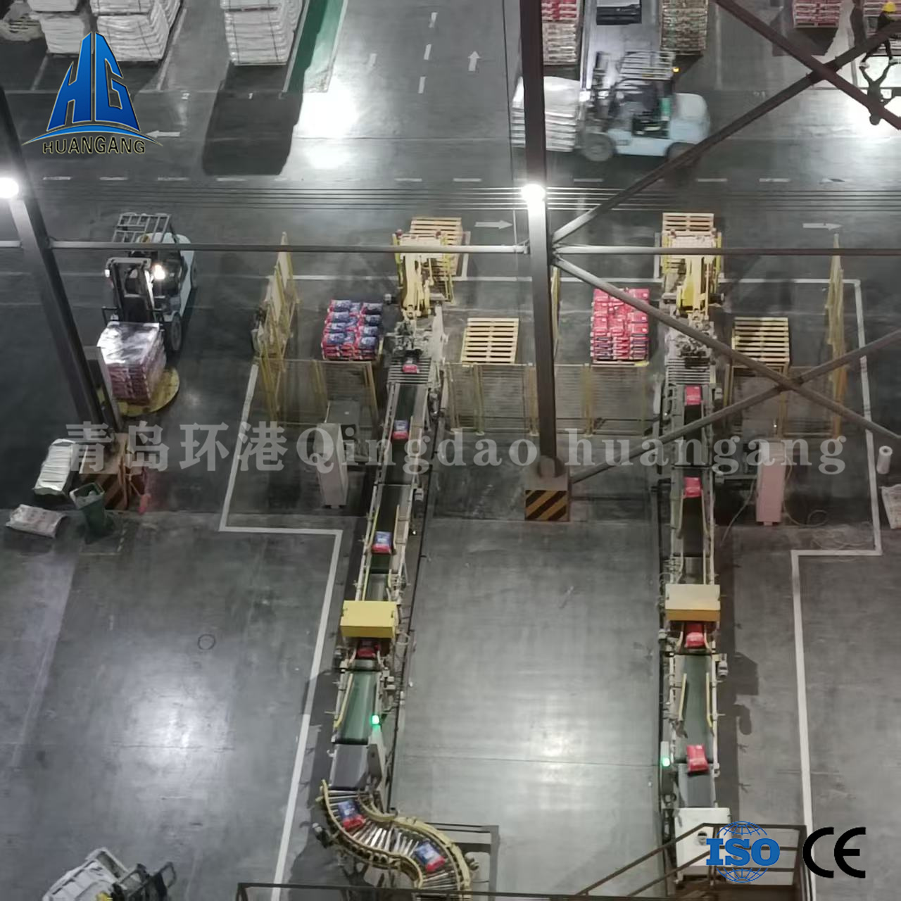 本設(shè)備一般由機械臂、機械抓手、碼垛皮帶機、清灰機、拐彎機、控制系統(tǒng)、末端執(zhí)行器(如吸盤或夾爪)等部分組成。當(dāng)機械手到達貨物抓取位置時,末端執(zhí)行器(如吸盤通過產(chǎn)生真空吸附力,或夾爪通過夾緊動作)會抓取貨物。之后,機械手將貨物移動到指定的碼垛位置,按照預(yù)先設(shè)定的碼垛模式(如交錯式、行列式等)將貨物逐一堆放。在整個過程中,傳感器會實時監(jiān)測機械臂的位置、貨物的抓取狀態(tài)等信息,以確保碼垛過程的準確和安全。